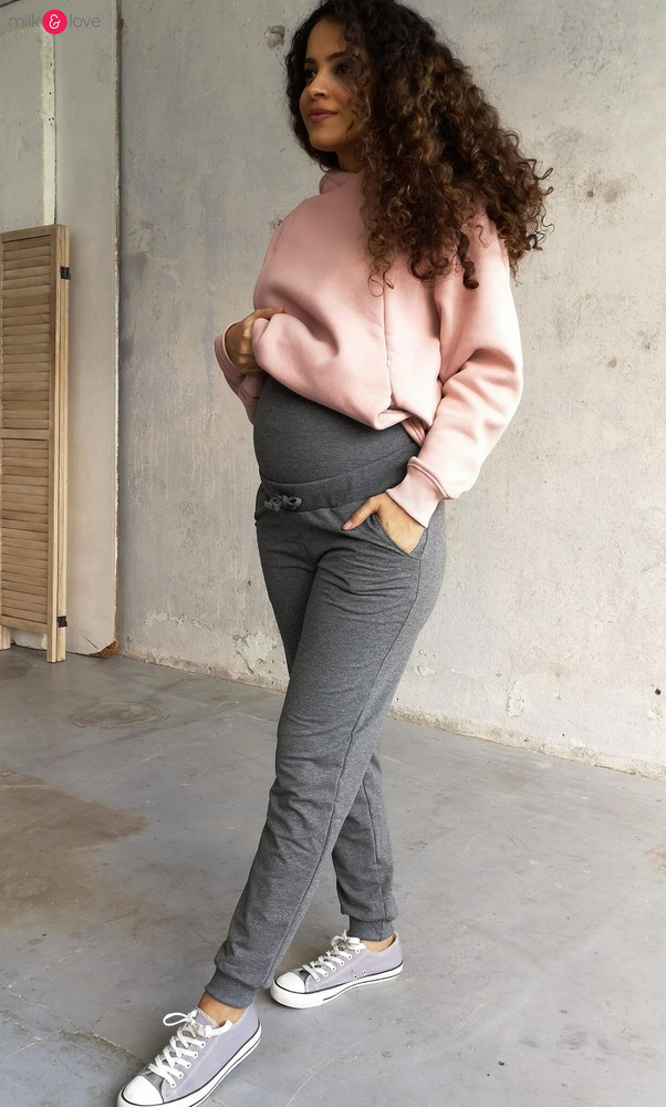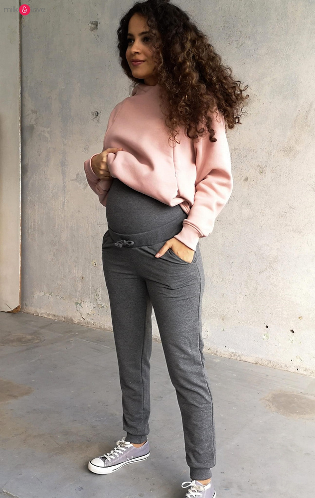 Spodnie z dzianiny w takim kolorze, żeby idealnie pasowały bluz ciążowych i do karmienia Milk Please. Kupując komplet - bluzę i spodnie, masz dresy ciążowe i później dresy do karmienia piersią w jednym!