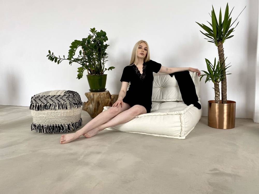 Női ing, kiváló minőségű viszkózból, rövid ujjal. V-nyakkivágás, mandzsetta széles virágos csipkemintával. Térdig érő. Minden nő különlegesnek fogja érezni magát benne !!