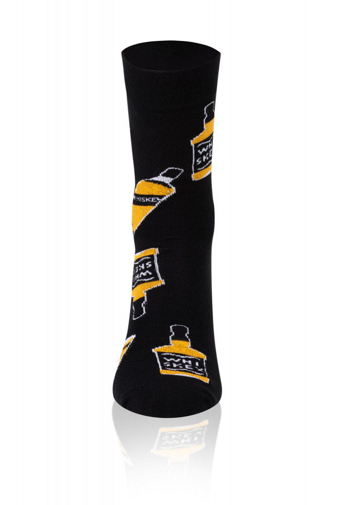 S121D Whiskey hosszú zokni olasz divat - fekete/sárga