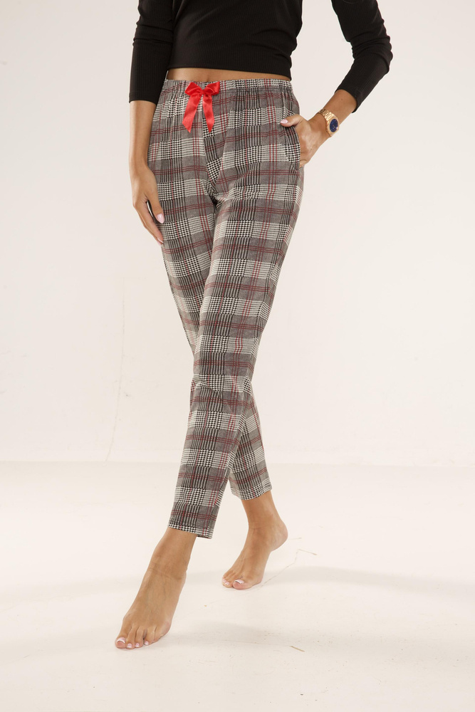 Kényelmes női nadrág alváshoz, kiváló minőségű viszkózból készült, kockás anyagból.