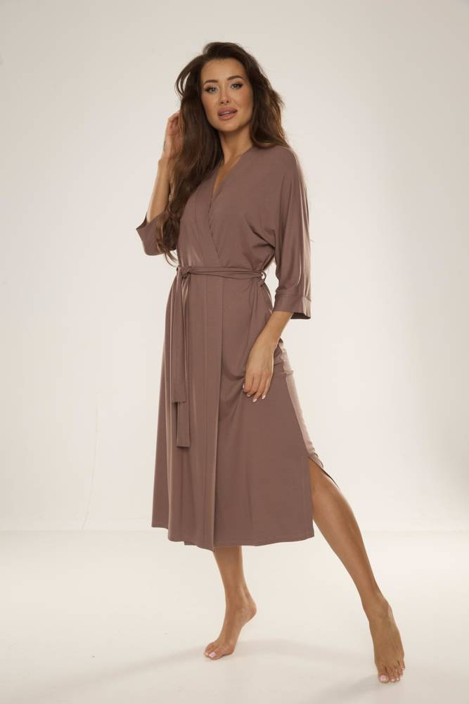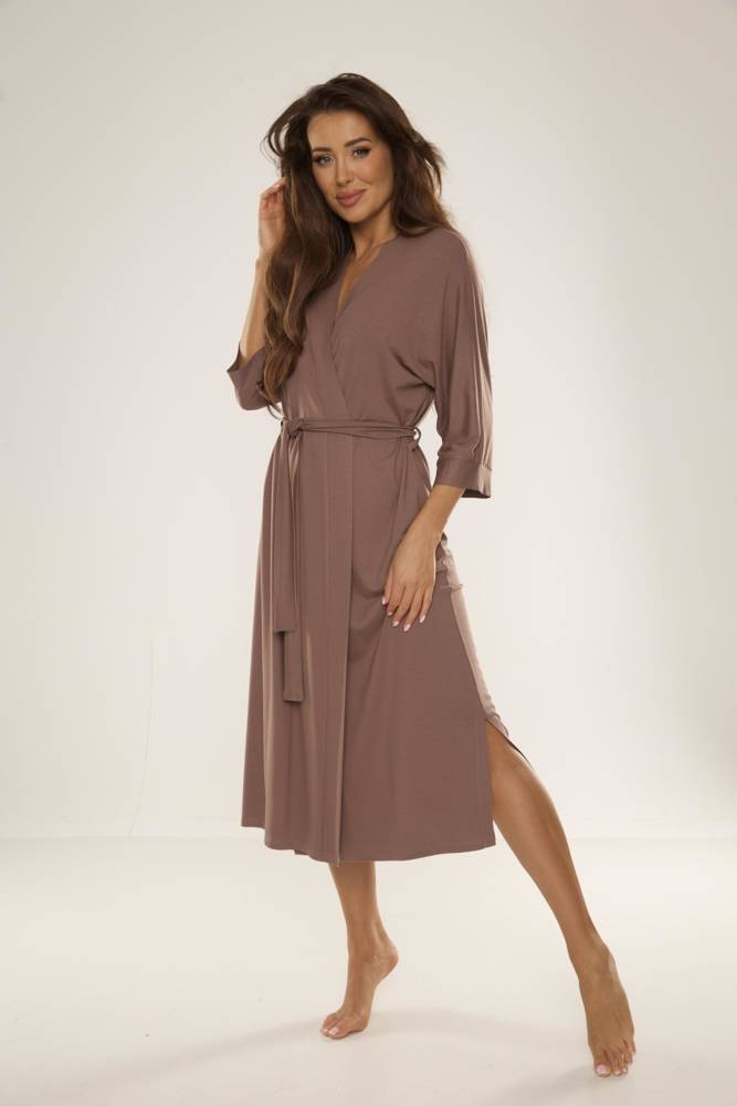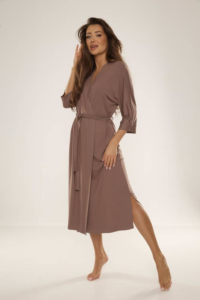 A hosszabb szabású modell tökéletesen körbeöleli a testet, míg a 3/4-es ujjak és a derék megkötő hangsúlyozzák a derekat, könnyedséget és nőiességet kölcsönözve az összképnek.