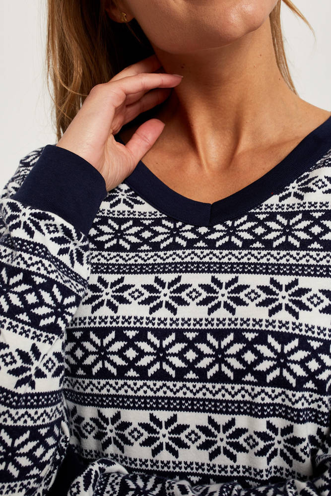 Hosszú nadrággal kiegészítve. Mindez egyedi téli nyomtatásban. Tökéletes az Alaska vagy Arctic kollekciók gyermek és férfi pizsamáival vagy overalljaival.