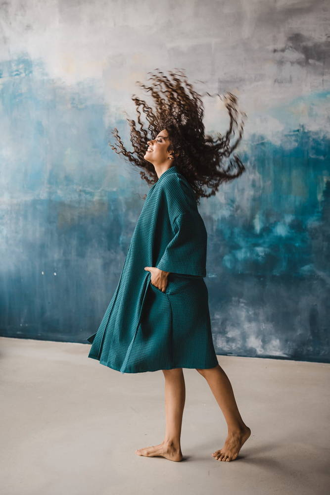 Szlafrok bawełniany wafel Milk&Love ciemna morska zieleń