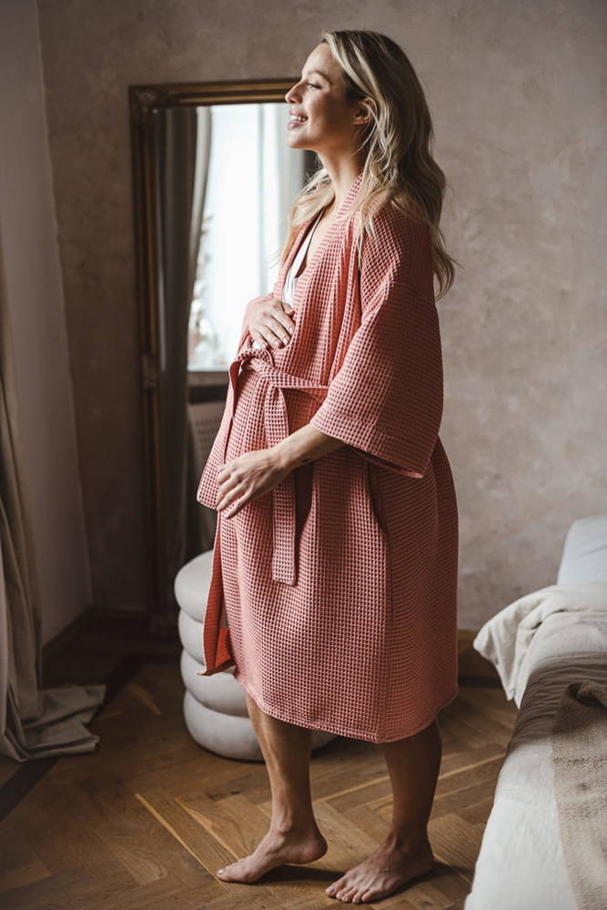 Szlafrok bawełniany wafel Milk&Love herbaciana róża