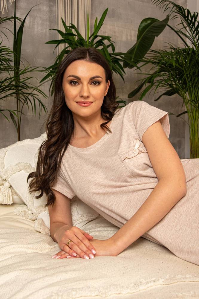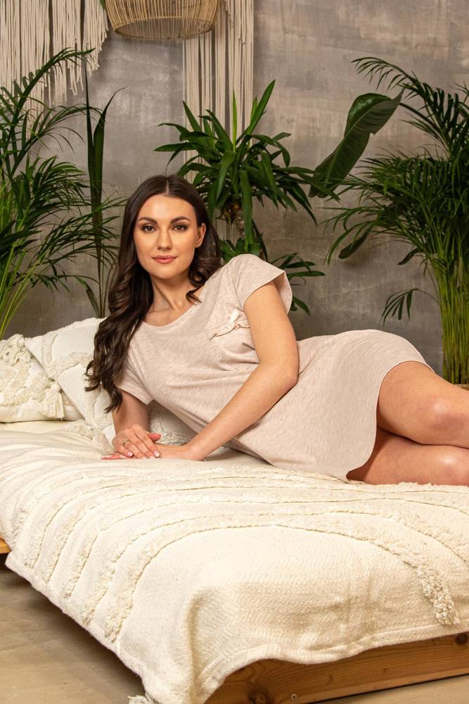 Női ing kiváló minőségű, kellemes tapintású pamutból. Rövid ujjú póló. Fél kerek nyakkivágás. Dhossz térd előtt. Nagyon kényelmes szabás, finoman a testhez szabva. A puhaságot és a szabadságot kedvelő nők számára vonzó lesz.