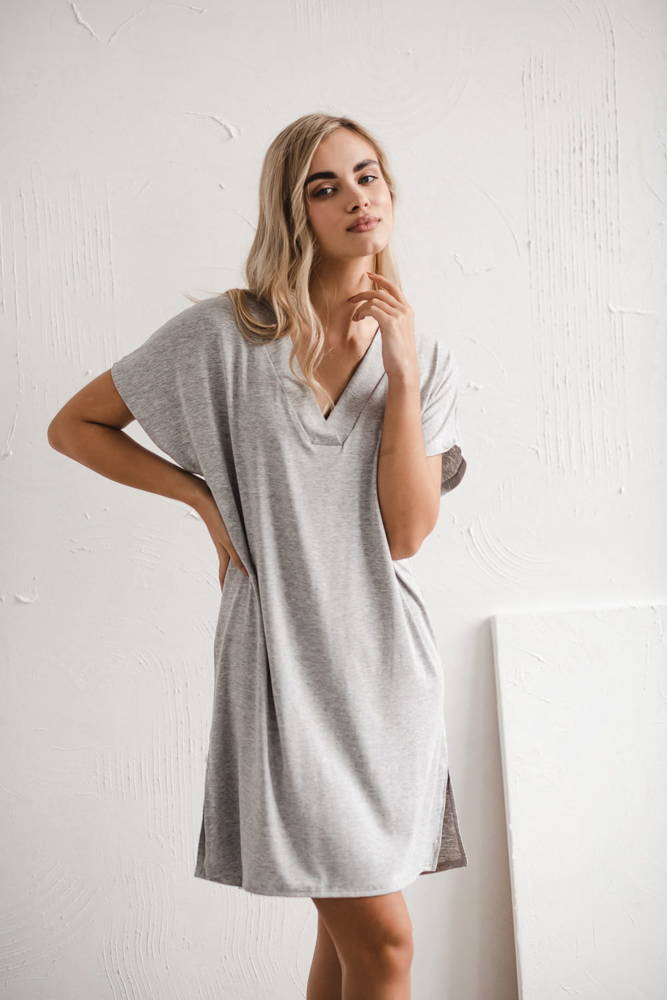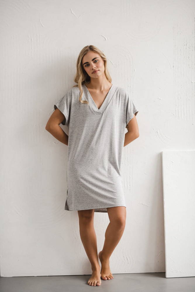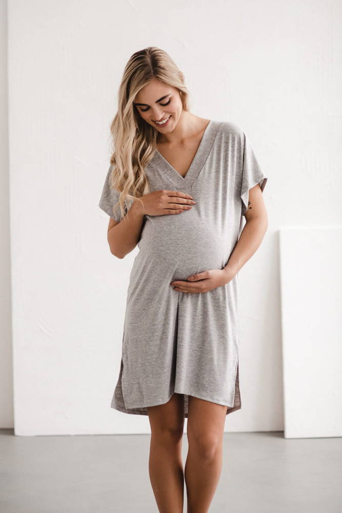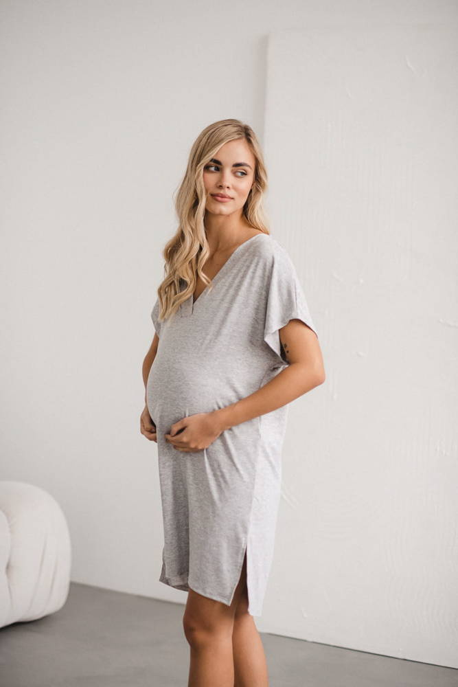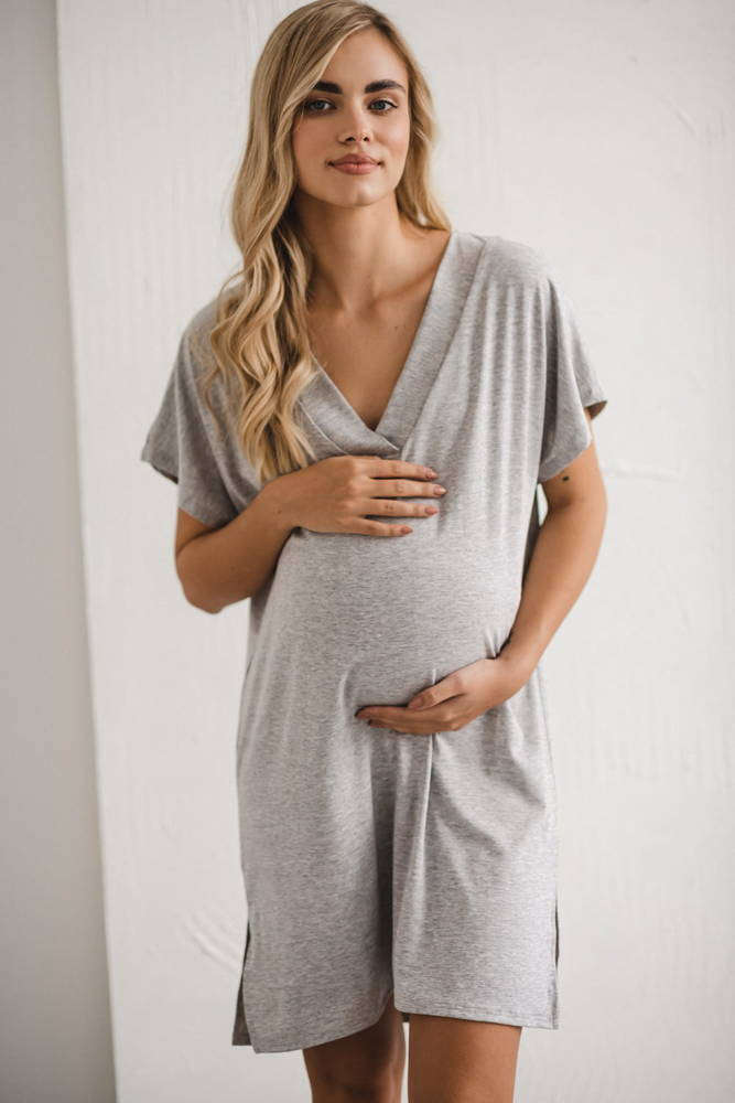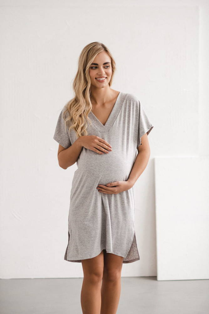 Moon wiskozowa koszula nocna ciążowa i do karmienia Milk&Love jasny szary melanż