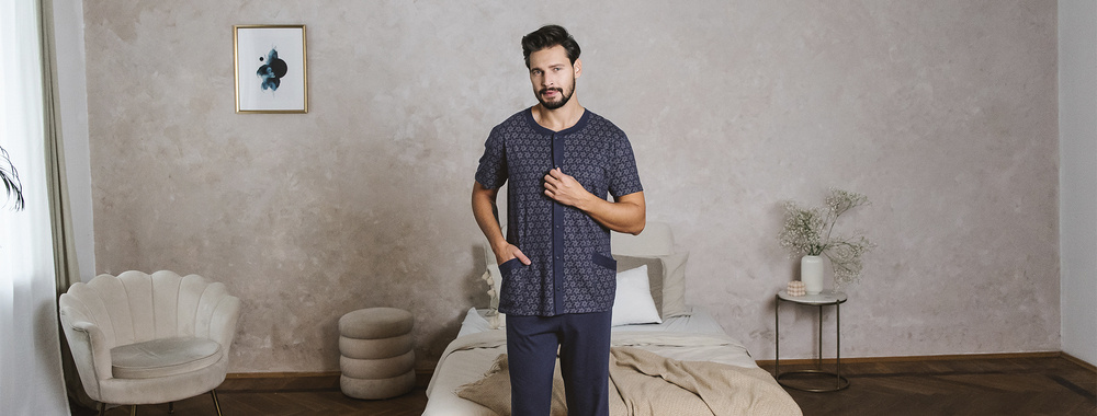 - Férfi pizsama Rövid ujjúLengyel gyártó 100% pamut